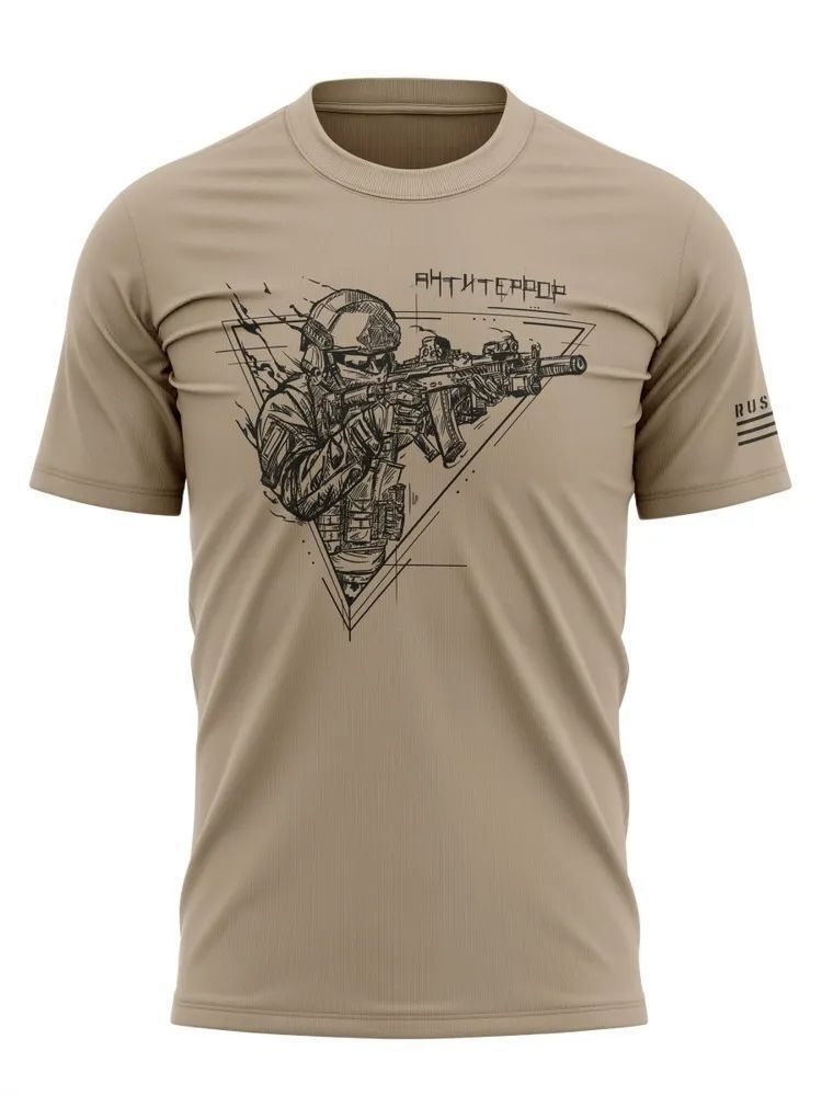 Футболка с принтом Барс «Антитеррор» (Бежевый)