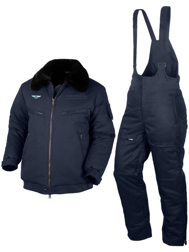 Костюм (Куртка + Полукомбинезон) полетный зимний с воротником из натурального меха. ГОСТ: 27575-87. Материал верха: Твил (88% хлопок; 12% полиамид); подкладка: 100% полиэстер; утеплитель: Шелтер. Производство: Округ (Россия).