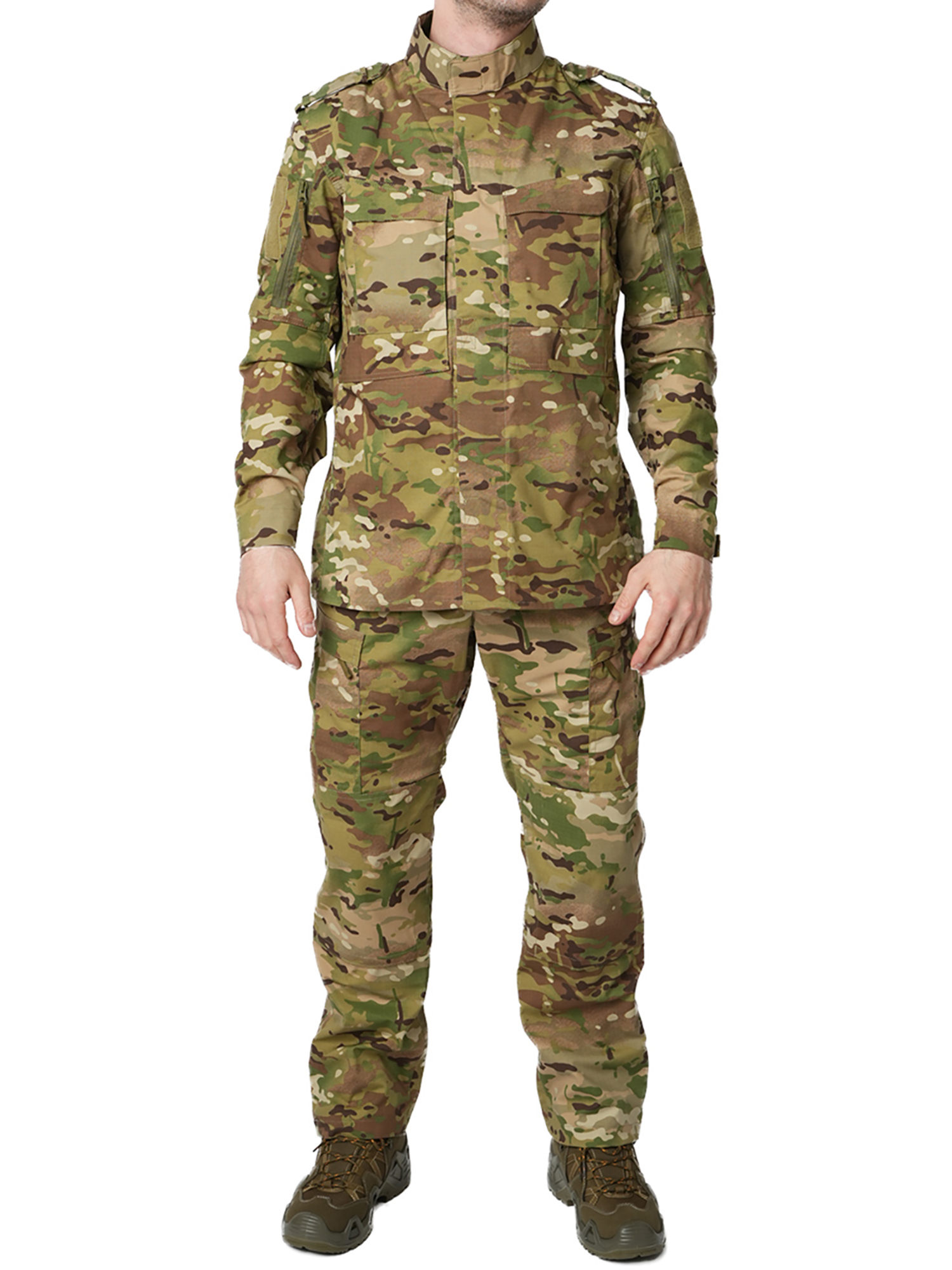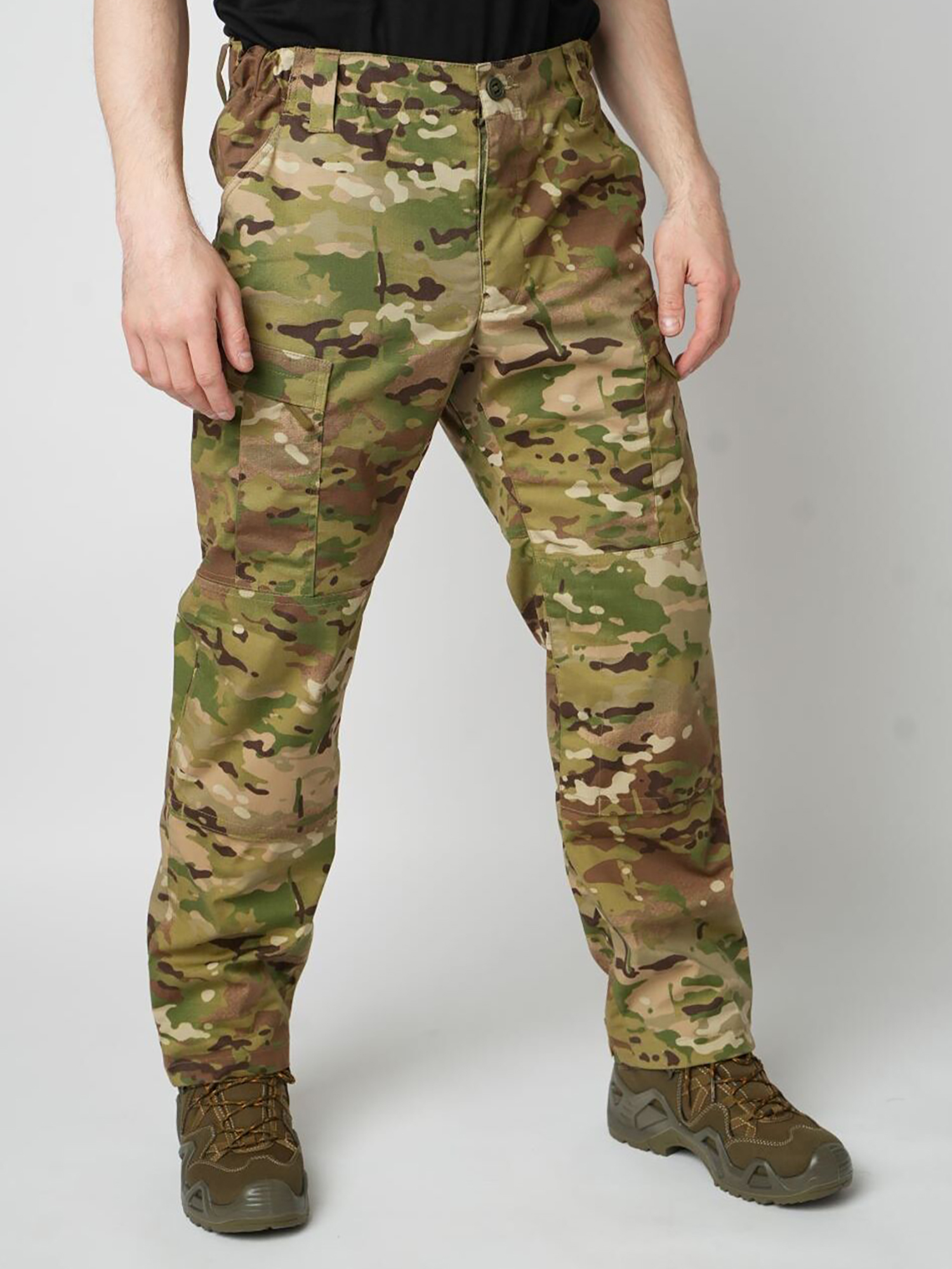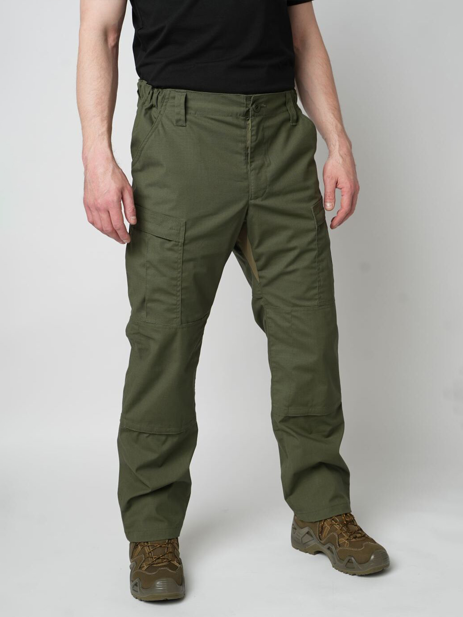 - область колен усилена вторым слоем материала с возможностью вставки мягкого пенополиуретанового наколенника, застегивается на липучки.