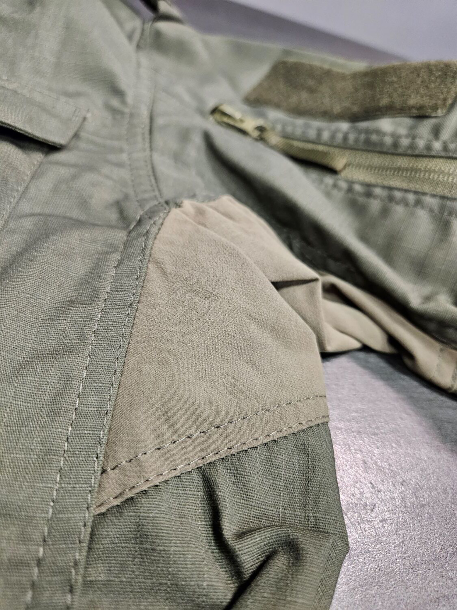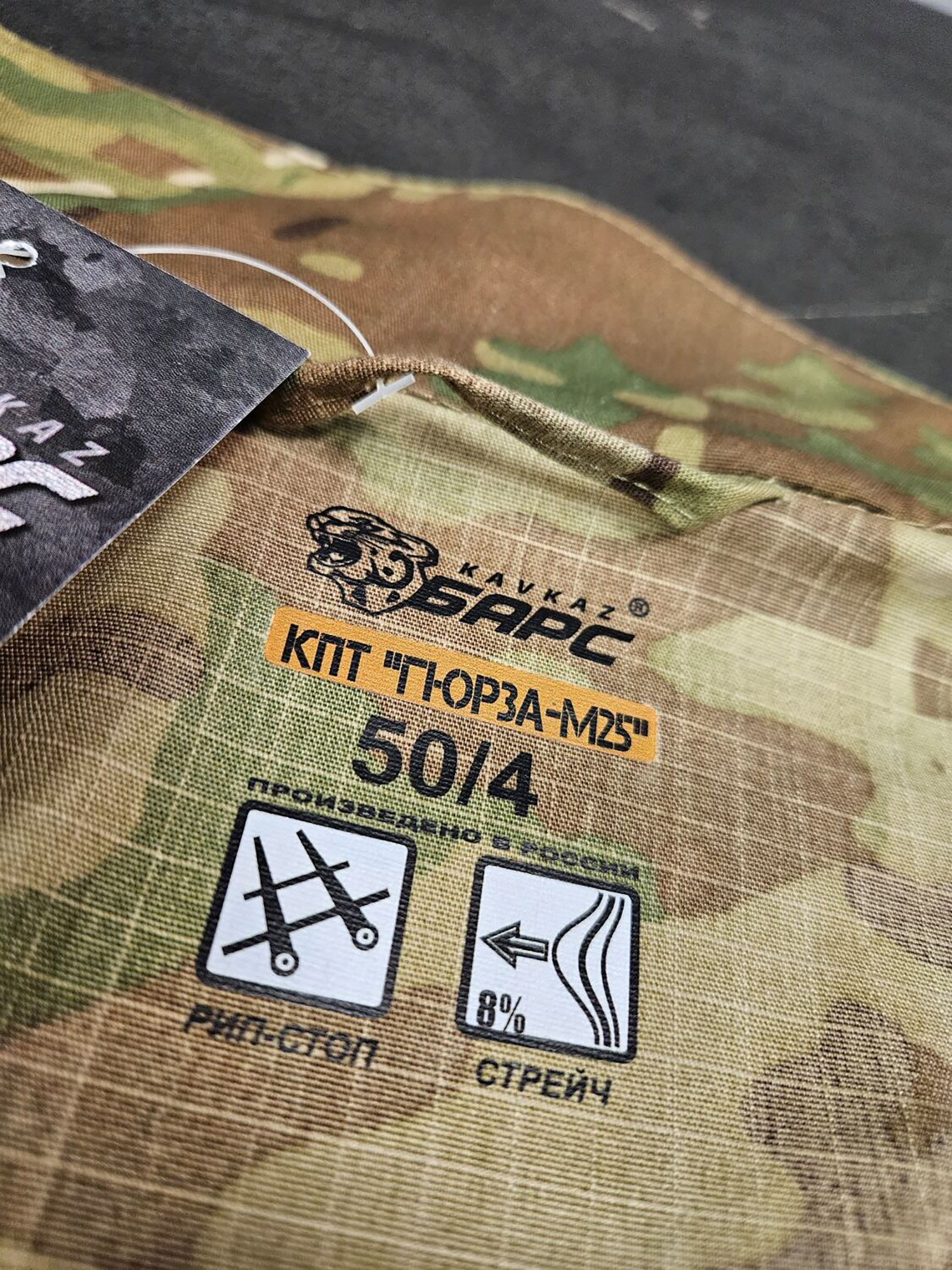 - РипСтоп Стрейч (60% Полиэстер; 32% Хлопок; 8% Эластан). Элементы: 92% Полиамид; 8% Эластан.